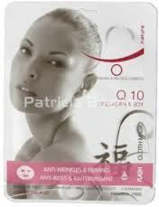 1 Máscara flash de tejido impregnada en Q10 + COLÁGENO + SOJA. Anti-edad & Reafirmante. Ayuda a combatir eficientemente el envejecimiento de la piel y a disminuir las arrugas y líneas de expresión, alisando y embelleciendo la textura de tu piel. Tu piel se siente, recuperada fresca y más joven. Actúa como un potente antioxidante para mantener la viveza y elasticidad de tu piel. Utilización: Desplegar la máscara y colocarla bien estirada sobre el rostro limpio. Tras 15 minutos, retirarla e para absorción del exceso de serum No aclarar. Recomendado 2 veces por semana. Para todo tipo de pieles. Durante todo el año. Precauciones: Evitar el contacto con los ojos. Sólo para uso externo. No reutilizable. No aplicar en piel dañada. Mantener alejado del alcance de los niños.