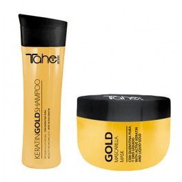 MASCARILLA GOLD. Con keratina pura y oro líquidoMascarilla de tratamiento regeneradora. Refuerza y protege el cabello coloreado, sensibilizado y maduro. Triple efecto: Brillo, nitrición y rejuvenecimiento instantáneo. Modo de uso: Aplicar el equivalente a 1 ó 2 nueces sobre el cabello lavado y secado con toalla, peinar y dejar actuar 2 ó 3 minutos. Enjuagar.